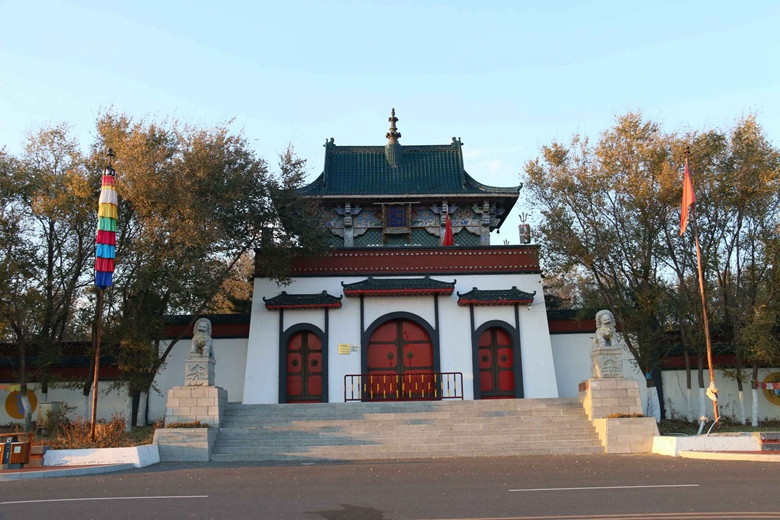 前行大约一公里处就是成吉思汗召。成吉思汗召是纪念大元朝的开创者,蒙古族的民族英雄,一代天骄成吉思汗而修建的,是继鄂尔多斯成吉思汗陵,乌兰浩特成吉思汗庙之后,中国第三处纪念、祭祀世纪伟人成吉思汗的场馆。继续前行至4.6公里的折返点,见左前方工业大烟囱左转,(会设有折返点标示牌)前行至约6.8公里,右侧有查干湖马莲米业牌子,和一个小蓝色警务亭,(这里是第一个补给点和医疗点,此处设有公共卫生间);继续前行至约八公里处会看到路边有三个广告牌.